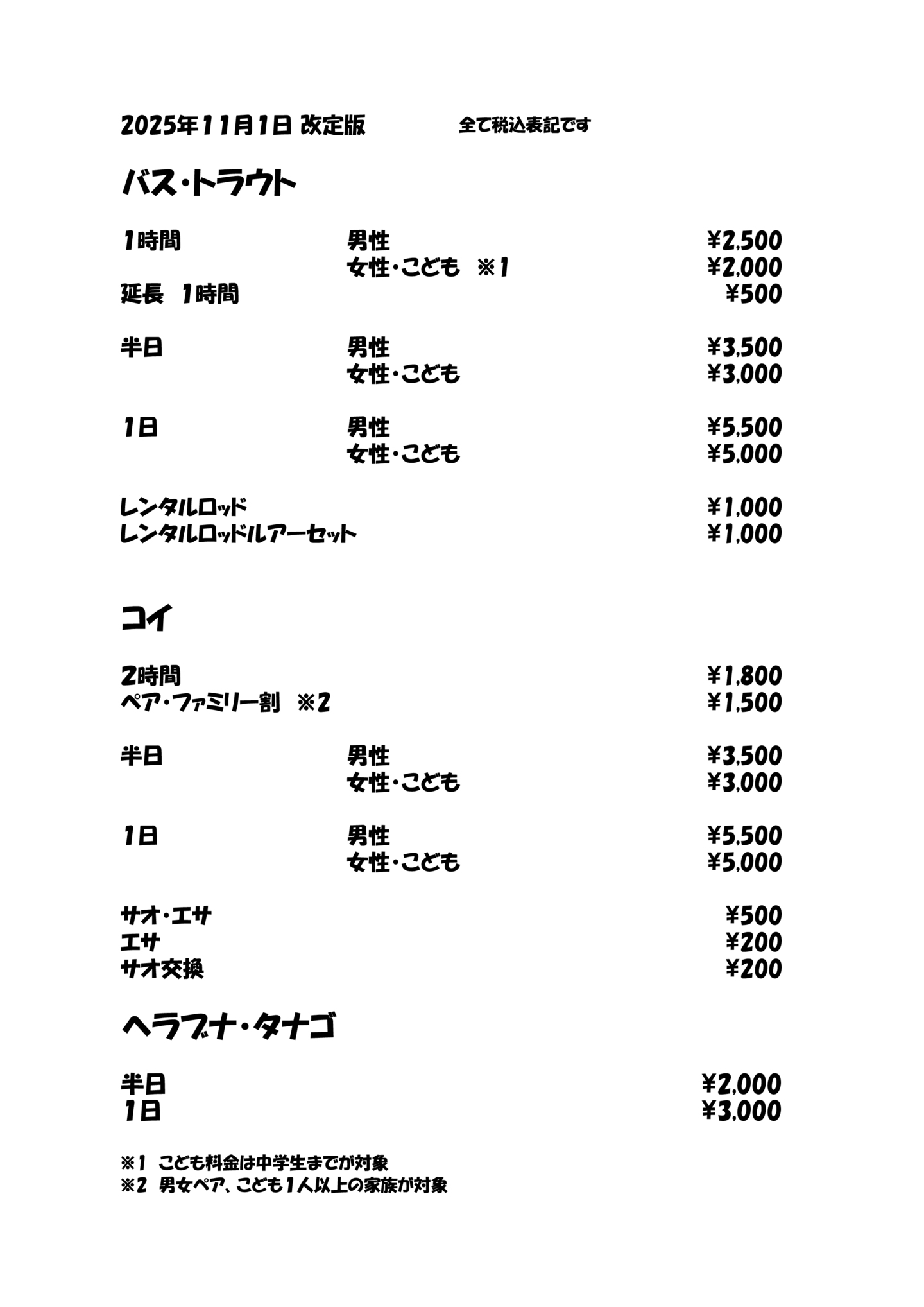 半日券/1日券はトラウト・バス・コイ釣りができる3魚種共通券です!